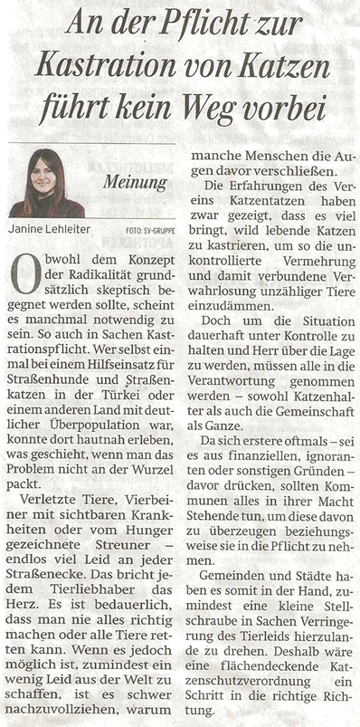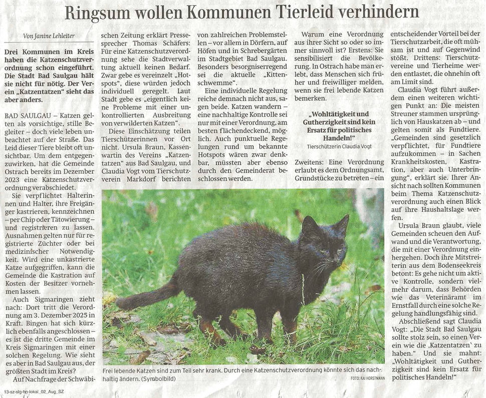 Gerne hätten wir Einführung einer Katzenschutzverordnung in 88512 Mengen begleitet.