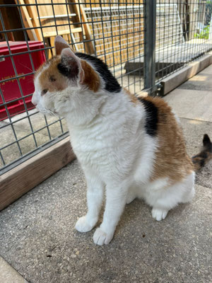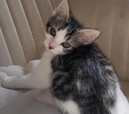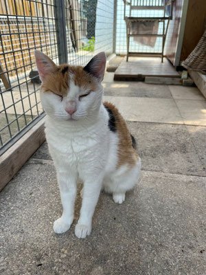 da hier sooo viele Katzenkinder sind, musste man das Gehege trennen und so bin ich etwas eingeengt und es ist echt kühl hier draußen. Ich bin zu fremden Menschen anfangs etwas schüchtern, mit meiner Pflegemama kuschle ich aber wie verrückt. Ich würde allerdings später gerne in ruhiger Lage, wieder nach draußen wollen. Wenn ich keine Familie finde, muss ich leider wieder zurück auf den Hof 😢