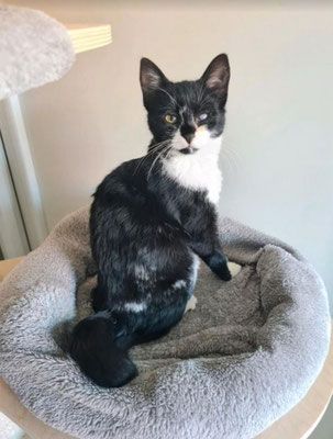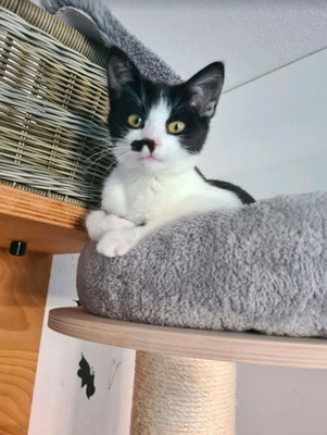 Salem, schwarz-weiß, ist ca. vier Jahre alt, kastriert und geimpft. Er ist noch ein wenig schüchtern. Er sucht ein Zuhause als Hauskatze mit eingenetztem Balkon oder Freigehege.