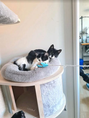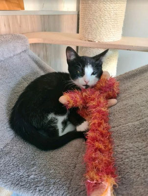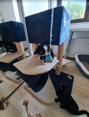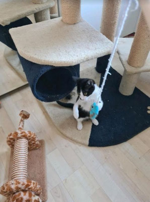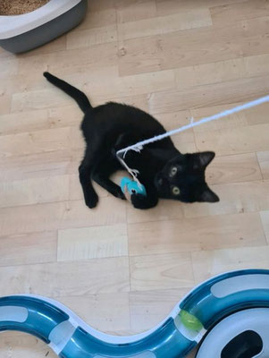 Wir merken aber immer mehr das Blacky in der Wohngshaltung unausgelastet ist und auch sehr sehnsüchtig nach draußen schaut wenn er die anderen Katzen draußen sieht. Er ist ein kleiner Freigeist, wenn er kuscheln möchte muss man alles stehen und liegen lassen, ansonsten ist er eher dabei. Wenn es Futter und Leckerlis gibt ist er natürlich immer der Erste.